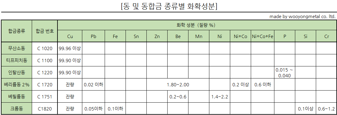 *동(전기동,무산소동,인탈산동), 크롬동,베릴륨동의 화학적 성질들입니다. 퍼갈때는 출처는 사랑입니다. ^^