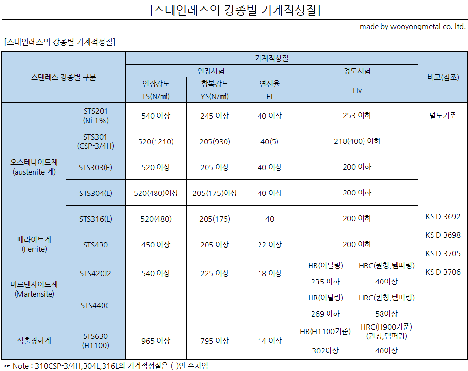 스텐레스 강종별 기계적성질입니다. 참고하시기 바랍니다.